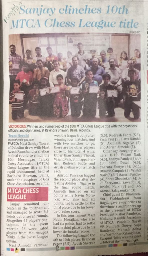 Meet Sanjay Thorat – chess prodigy from Regina Mundi School who is all set to become one of the best chess players that Goa has ever produced.He started playing chess since he was in class 1 and has already won around 40 trophies in various competitions around the state.