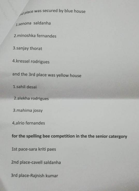 A warm welcome to the results of the Edmund Rice Week Competitions for 2018.We had many competitions like quiz,spelling bee,solo and group singing and instrumentals. There were als many other off stage competitions organised by Ms Shweta.Many students were waiting eagerly for the results so come on lets see..