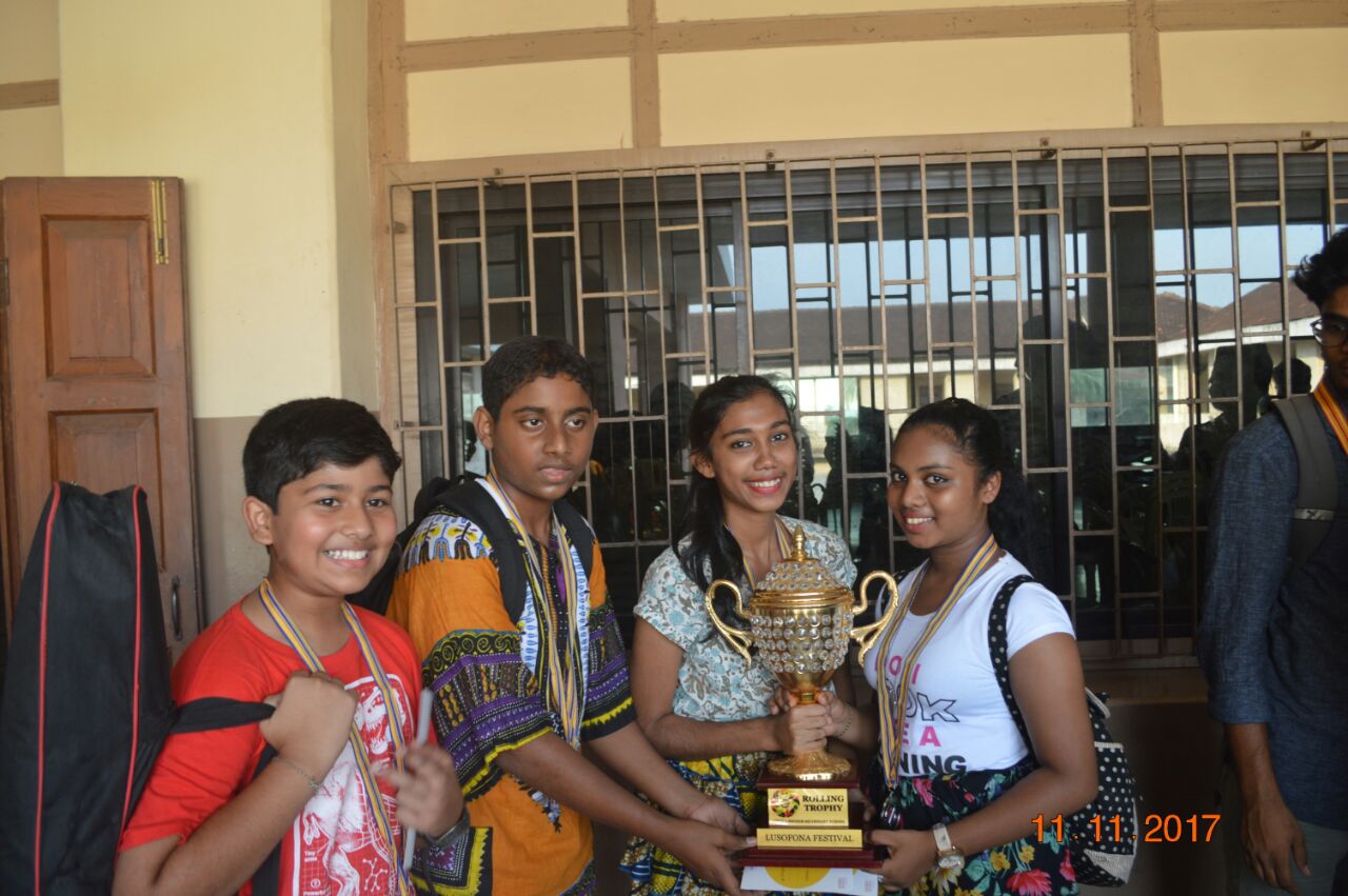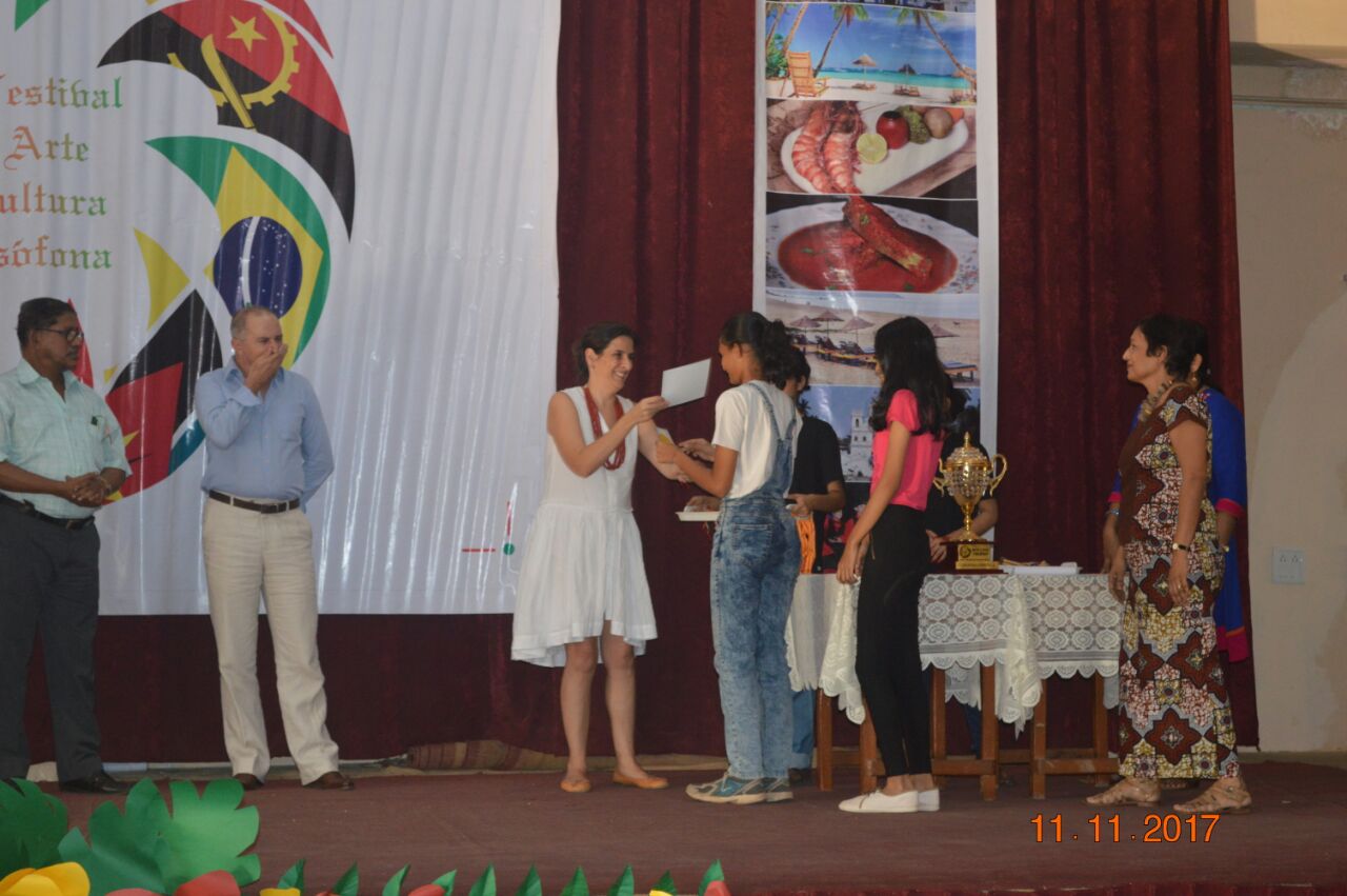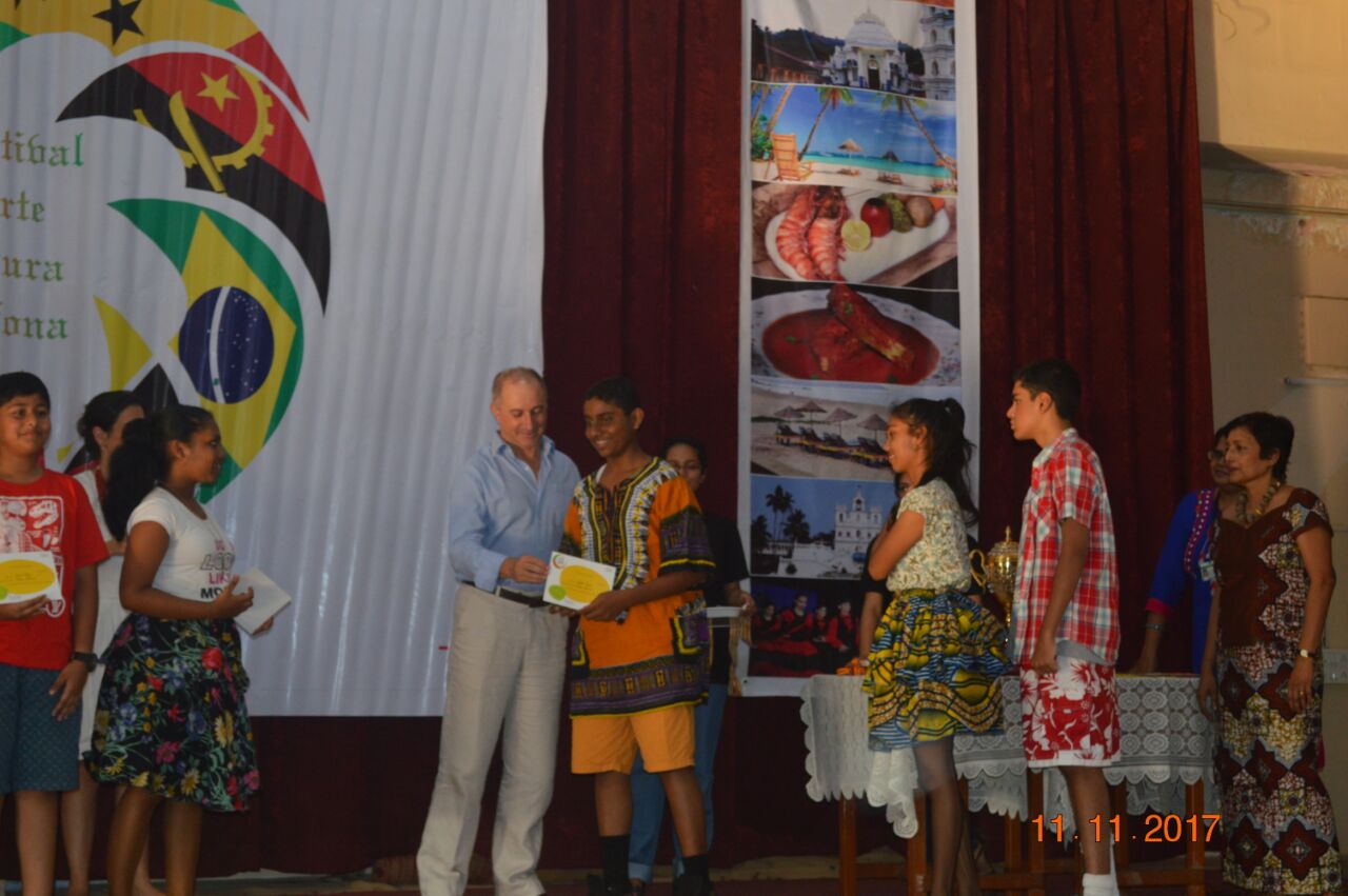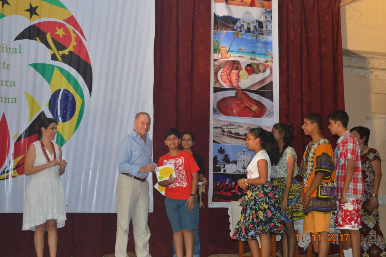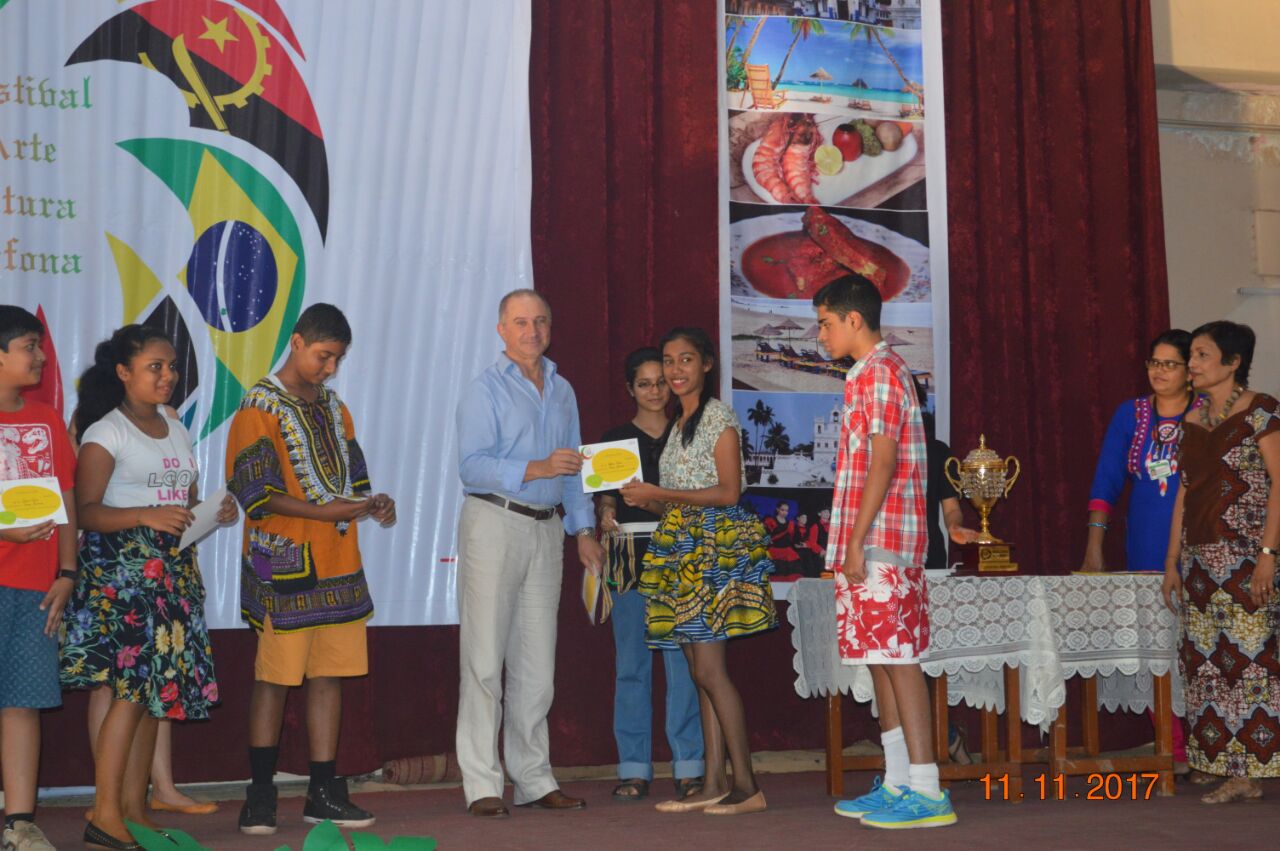 The event,for which the students had been preparing for about a month,proved to be successful. There were three events for the students of secondary school: A traditional dance of any Lusophone country,a T-shirt painting competition on the Lusophone theme for the students of classes 9 and 10 and a doodle art competition for the students of class 8. In the T-shirt painting competition, Ana Smriti and Shanice from class 10 won the first place for a painting depicting the famous Portuguese sailboat with a Portuguese guitar and the famous galo de barcelo. In the dance competition, Leona (class 10), Adora (class 10), Nathan (class 9), Duane (class 8) and Mel (class 8) won silver for a wonderfully choreographed Mozambican dance. Minoshca and Giselle from class 8 took part in the doodle art competition and presented a lovely piece of art.
