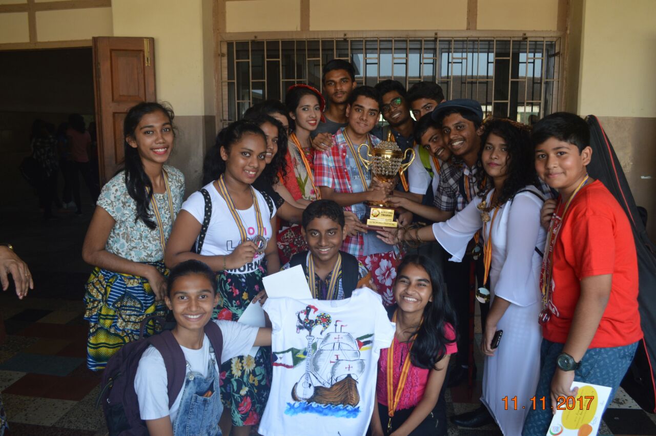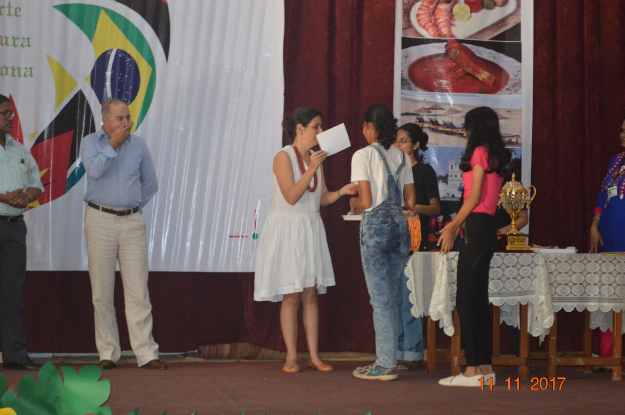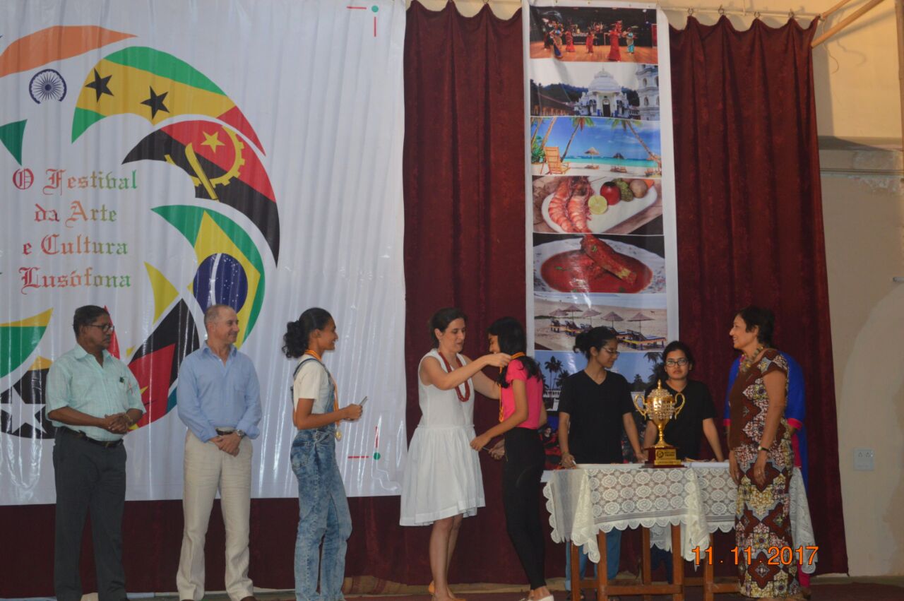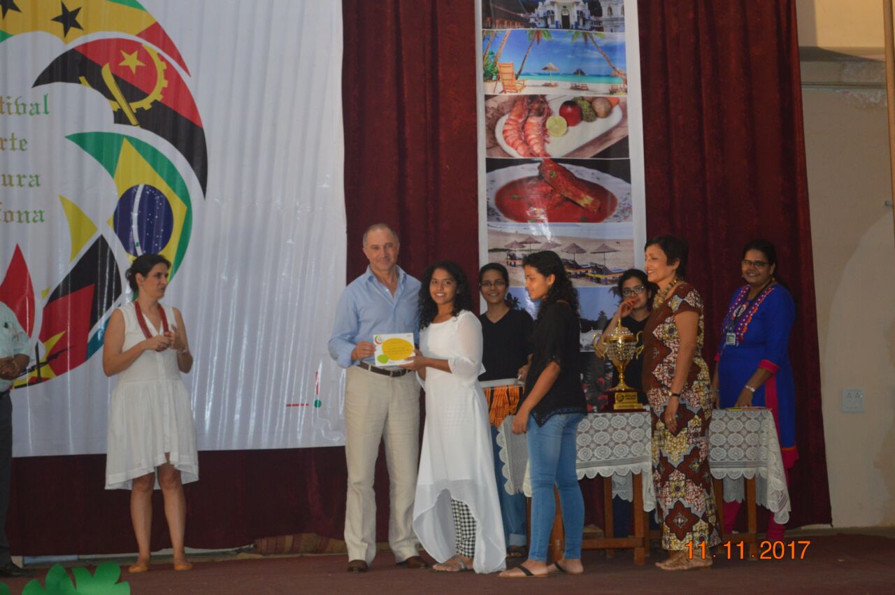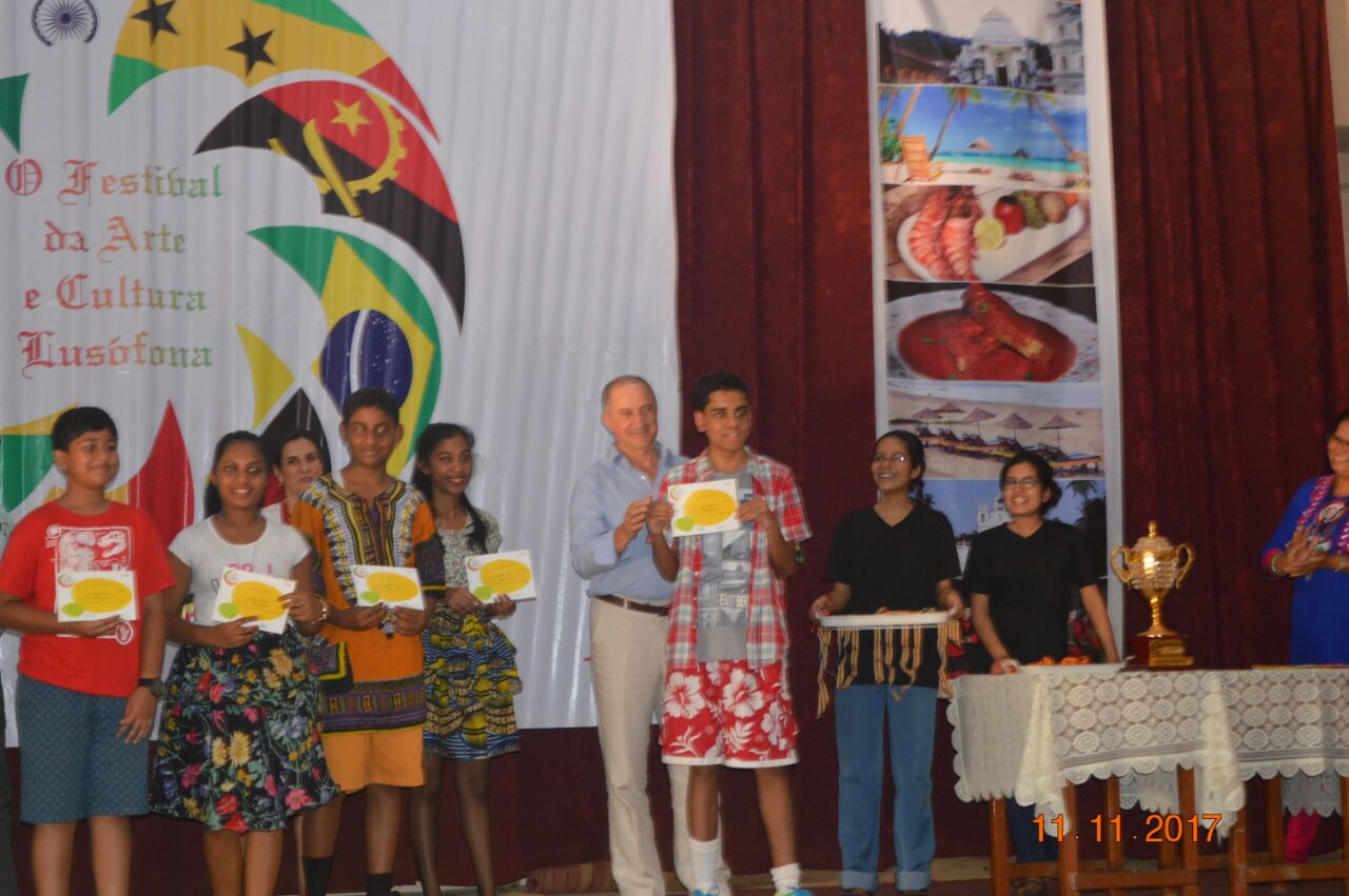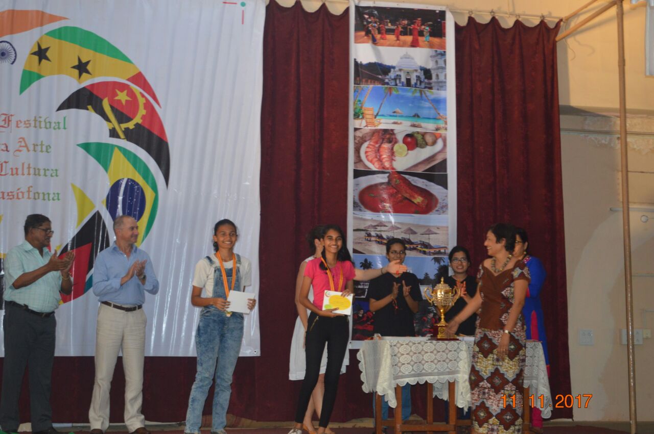 The event,for which the students had been preparing for about a month,proved to be successful. There were three events for the students of secondary school: A traditional dance of any Lusophone country,a T-shirt painting competition on the Lusophone theme for the students of classes 9 and 10 and a doodle art competition for the students of class 8. In the T-shirt painting competition, Ana Smriti and Shanice from class 10 won the first place for a painting depicting the famous Portuguese sailboat with a Portuguese guitar and the famous galo de barcelo. In the dance competition, Leona (class 10), Adora (class 10), Nathan (class 9), Duane (class 8) and Mel (class 8) won silver for a wonderfully choreographed Mozambican dance. Minoshca and Giselle from class 8 took part in the doodle art competition and presented a lovely piece of art.