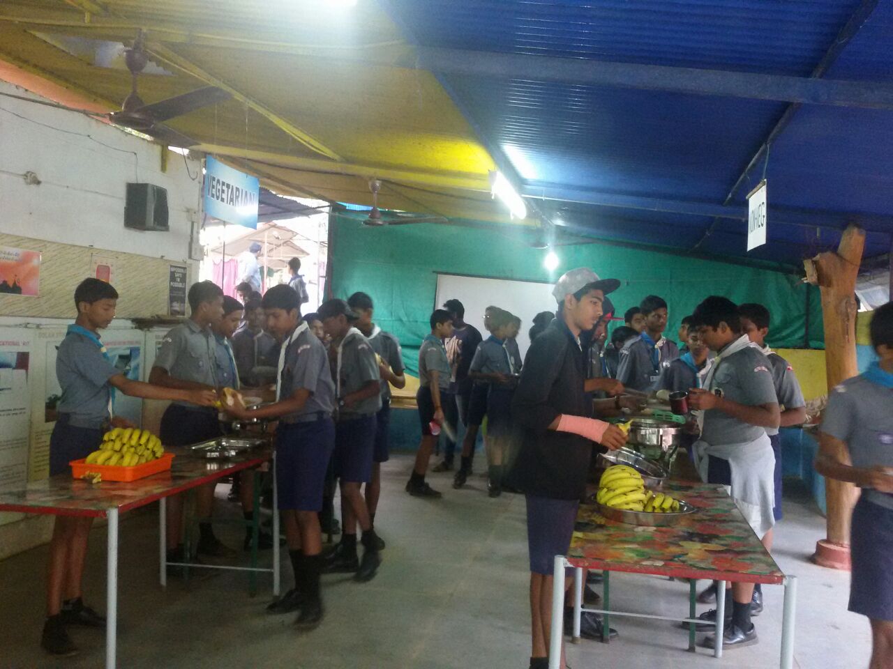 On arrival at the campsite, we were warmly welcomed by Mr. James Fernandes, the owner of the campsite. We hoisted the Bharat Scouts and Guides flag and soon after set out to make our gadgets. Not long after finishing that we had an inter-patrol vegetable/ fruit carving competition. It was quite astonishing to see the most unexpected people carve so beautifully! After lunch and a tea that day we had a s presentation by Mr. Chandrakanth Shinde, who showed us the gentle side of snakes that we often overlook. After dinner, we had our first campfire where we performed our advertisements and yells patrol wise. We had a great deal of fun and our otherwise sober teachers sang, dance, laughed and had fun with us.
