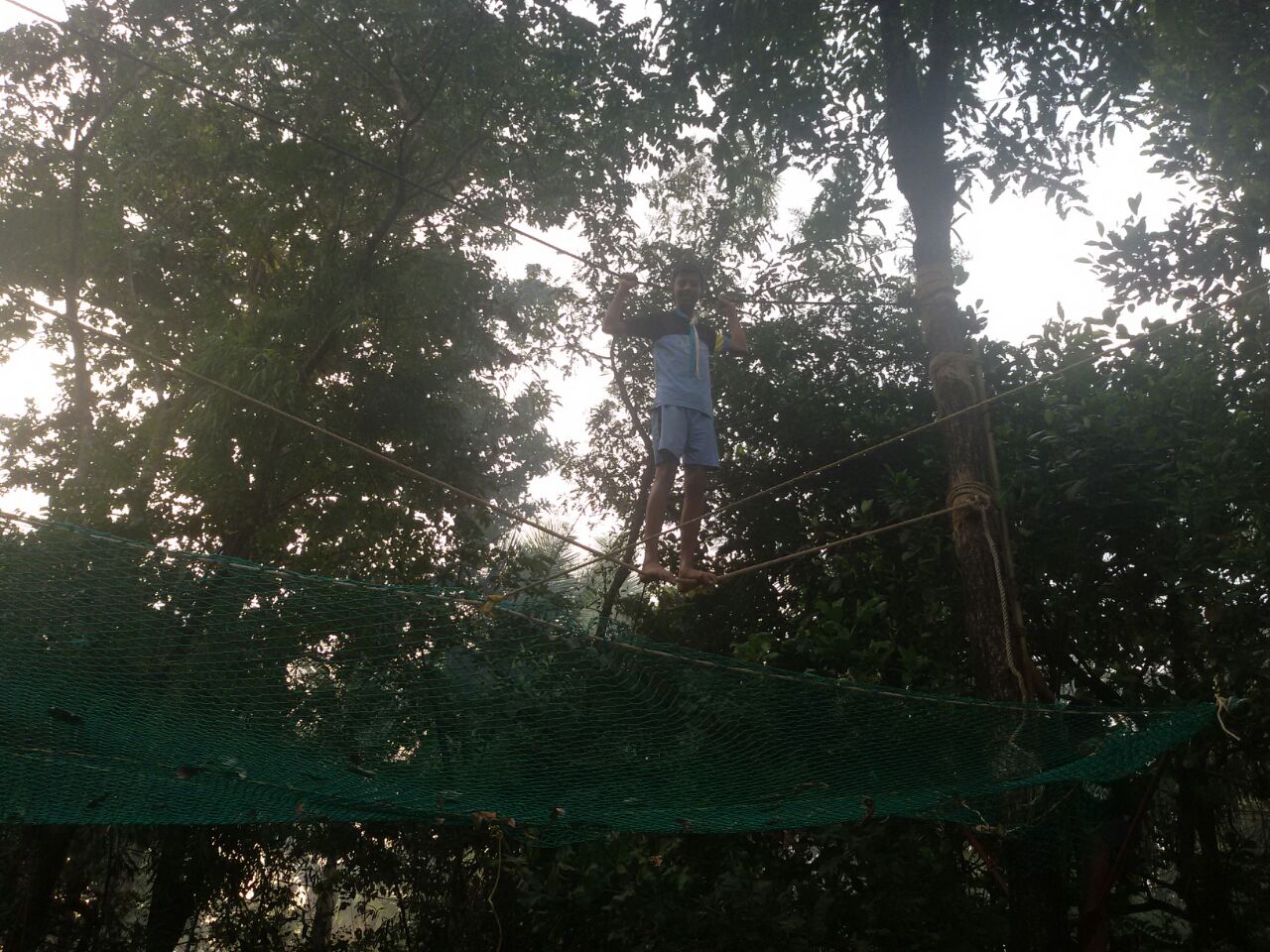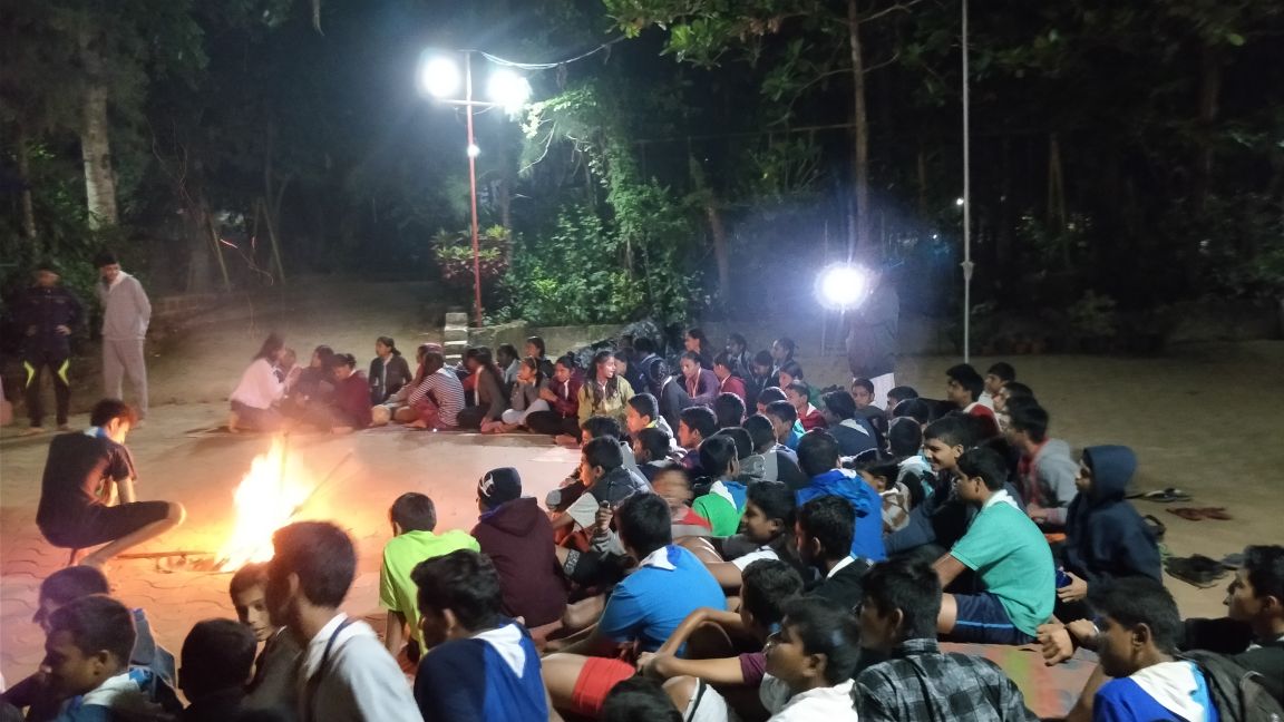 Early the next morning we were woken up by the sound of a cock crowing in the distance. All of us went for a light jog which was followed by Lord Baden Powell’s six exercises. After hoisting the Bharat Scouts and Guides flag, all of us were seated for the prayer for all faiths. After Breakfast, we had corner decoration and tent layout competition for the scouts and guides respectively. After lunch we had wealth out of waste making competition which followed a series of games which all of us enjoyed. After the games came the long awaited pioneering and adventure activities. We had a lot of fun while jumping, climbing and monkeying about. After dinner, that night, we had and enjoyed our last campfire where we performed the skits we had prepared. And did we laugh our heads off at our budding tiatrists!