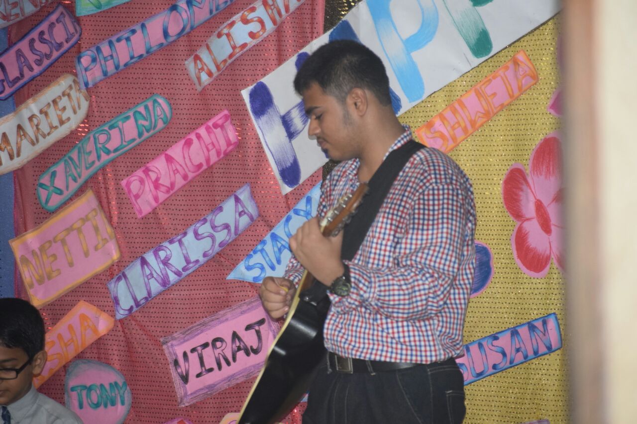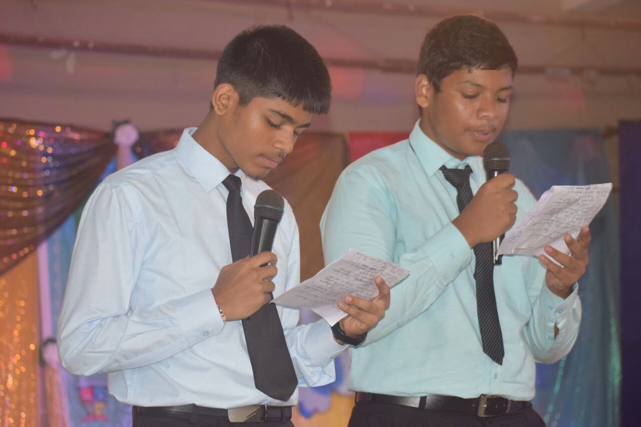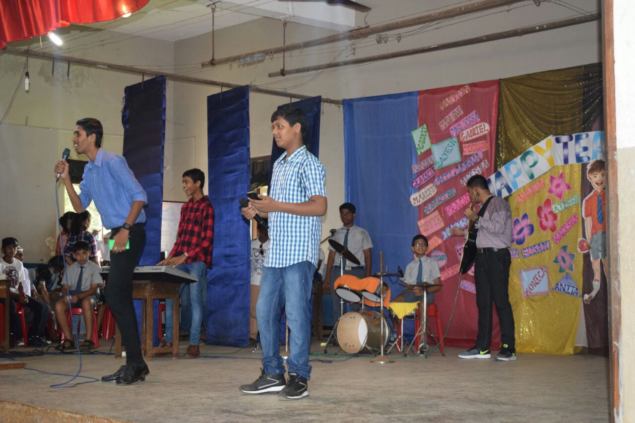 At around 9:00 all the students gathered in the hall for a programme of song and dance and more. The teachers and non teaching staff were all given little flowers to wear which were made by the students. The programme began with a prayer service conducted by Tr Nettie. Then primary students performed a lovely Hindi song. Vernon and his group performed two songs which were followed by a performance by the famous little tiatrist Infant Joy from class 6. The primary students then performed a dance. The 10th standard students put on a presentation showing our gratitude to the teachers and the non teaching staff for their support through these years. This was followed by a funny skit with a message and two more dances, one jive and two old bollywood. To punctuate the programme were some spot prizes.We found out that Sir Manoj has the longest hair and our female teachers wear pretty long earings!